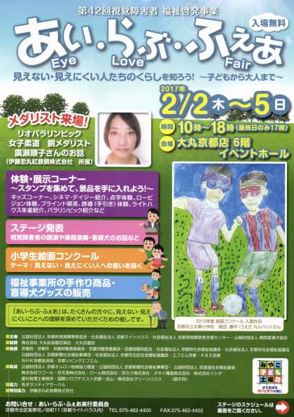 2月4日(土)、大丸京都店6Fで開催中の「あい・らぶ・ふぇあ」(第42回視覚障害者福祉啓発事業)で、本校2年生のデザイン専攻とファッションアート専攻の生徒が研究発表します。