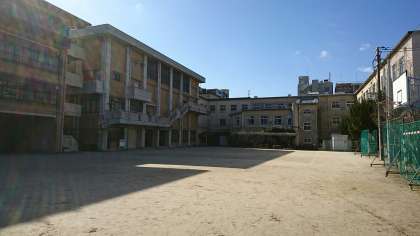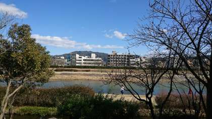 写真上 グラウンドから鴨川、大文字のほうを望む