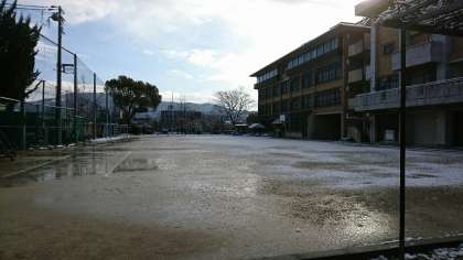 2月11日(土)、昨日からの雪が積もりました。立春過ぎてからの春の雪。溶けやすく、グラウンドはぬかるみになりました。