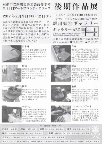 第11回アートフロンティアコース後期作品展 12日(日)14:00〜ギャラリートーク