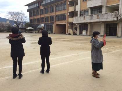 名刺には自分で学校のお気に入りポイントの写真を入れるため、iPadで各自が撮影し、それを取り込んでデザインを作成しました。