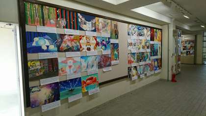 現在は、昨年度1年生「表現基礎1」の課題「I LOVE 京都」、2年生「表現基礎」の課題「動物と○○の世界」が展示されています。