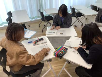 最初のミーティング(12/5)では、何から始めて良いか、どんな発表をすればよいのか、手探りの状態からのスタートとなりましたが、まずはそれぞれの作品を読み合って感想を共有し、共通するテーマを考えることからスタートしました。お互い話すことは初めてでも「まずはやってみよう!」「何事も楽しもう!」という本校らしい気質から、それぞれ活発に意見を出し合っていました。