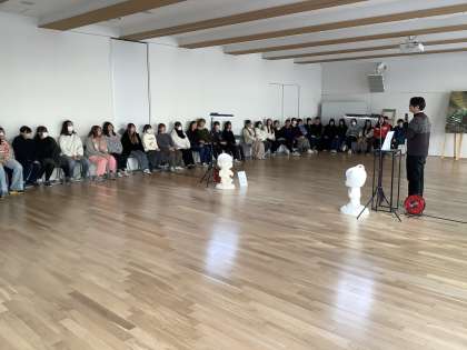 12/10(水)実習3の授業で、後期作品展を間近に控えたアートフロンティアコースの3年生に向けて、山城大督氏(※)をお招きして特別授業が実施されました。