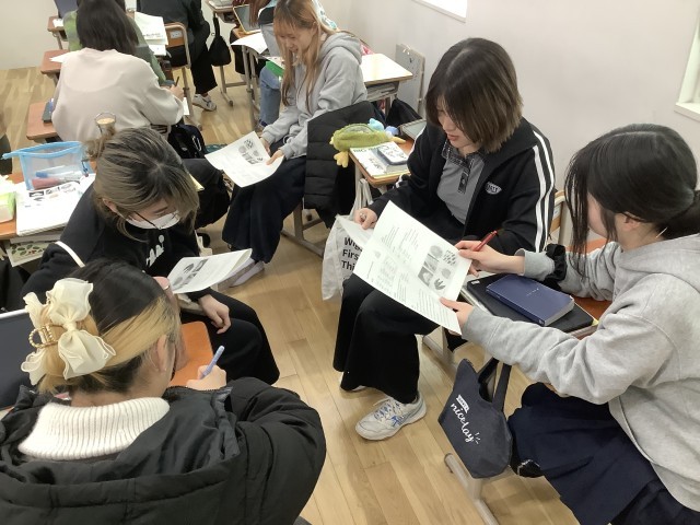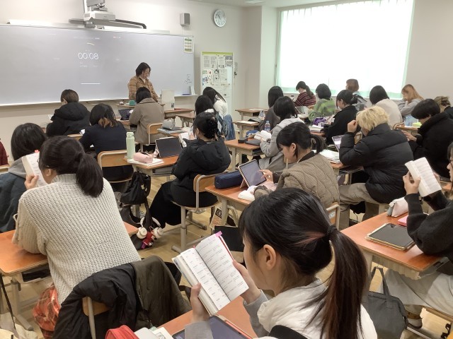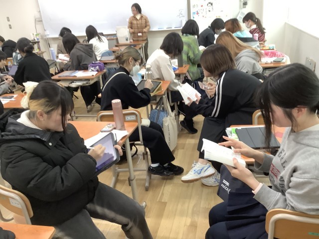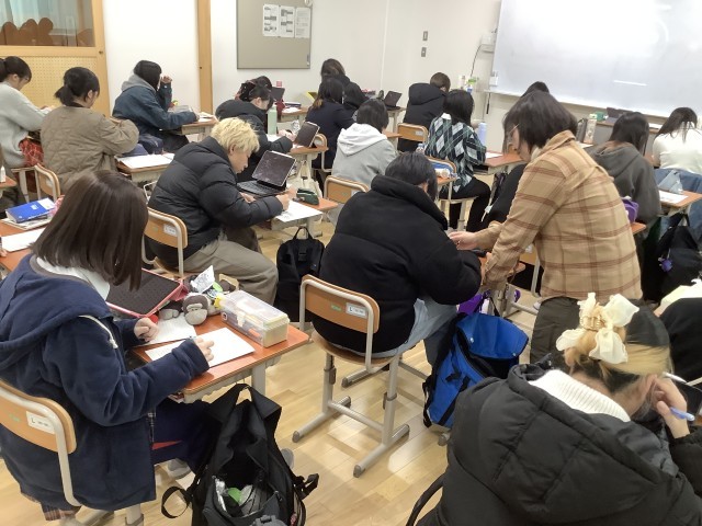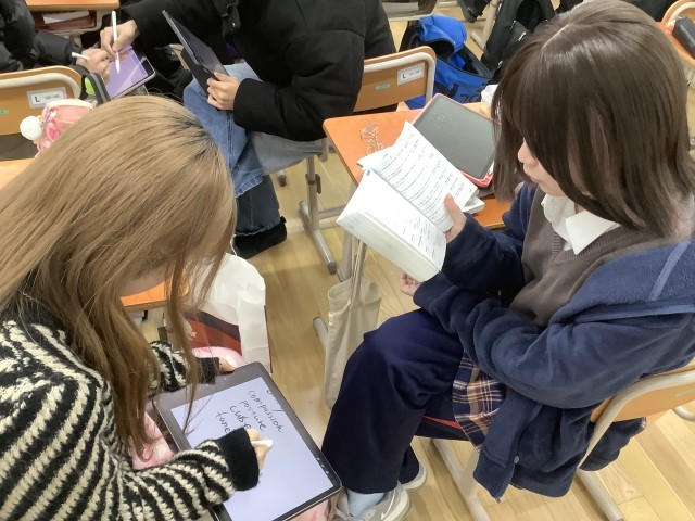頻繁に隣同士確認し合うことで楽しく理解を深めながら授業が進んでいく風景が印象的でした。