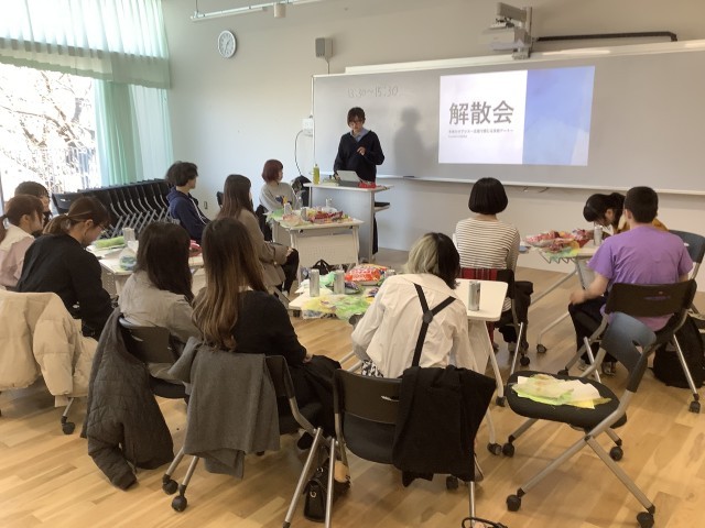 解散会は、生徒たち自身が企画から運営まですべて自分たちで考え、「温かいオアシス」として懐かしい写真や映像、BGMを流すなど安心して話せる場のデザインを行い、それぞれの思い出や成長の過程、相手への感謝の気持ちや今後の目標を共有し、互いにエールを送り合い温かな空気に包まれました。イベントで行った布風鈴の制作にも取り組み、くつろいだ雰囲気の中、解散会はとても盛り上がりました。(提言案作成チームがまとめたテキストも確認できたので、今後整理しHP等でお知らせ予定です。少々お待ちくださいませ。)