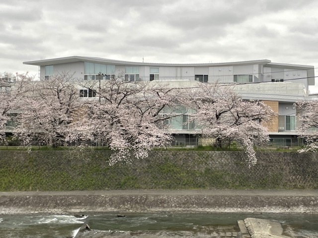 新年度を迎え、本校東側、鴨川沿いの桜並木が満開となっています。