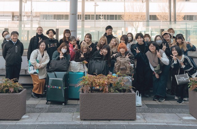 春休みの生徒の素晴らしい活動のひとつとして、2025年度Bridge To Boston第3期代表派遣生徒の研修が無事終了しました。派遣生徒たちはボストンアーツアカデミー(BAA)を訪問し、同世代のアートを学ぶ高校生と出会い、交流し、大きな刺激を受けて3月22日に帰国しました。3月17日の出発時には、集合場所の京都駅に交流活動チームや先輩派遣生も集まり、とても賑やかな見送りとなりました。