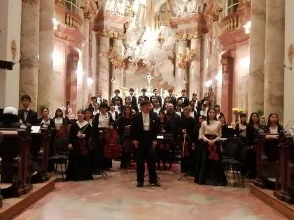 ◆今日は,チェコに引き続き,ウィーンのカールス教会で演奏会をしました。チェコとは違いとても寒くて,体調不良の人も何人かいましたが,本番は無事全員で出られて良かったです。教会のひびきがとても美しく,鳥肌が立ちました。現地の方もたくさん聴きに来てくださって,演奏していてとても気持ち良かったです。温かい拍手を頂き,笑がおで帰られるお客さんをみて,言葉は通じなくても,音楽でつながれることを改めて実感しました♪明日も安全に気をつけて楽しみましょう!! (K.N.)