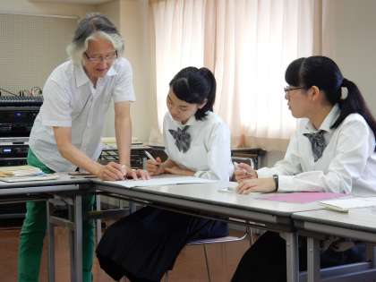 専攻生の作品それぞれについて大変細やかに見てくださり、講評をいただいたほか、数々の名曲を例に、より音楽的に、そして効果的に音楽を作るヒントをたくさんご教示いただきました。自作品をめぐって語られる学びはどれも大変身近に感じられ、生徒たちも興味深そうでした。楽器の特性を活かしきるには?また緊張感を持続させるには?といった様々な方法や、再現部の書き方に関する助言を受け、講座終了後には早速次の課題を求めるなど、意欲が高まっているようでした。以下生徒の声です。