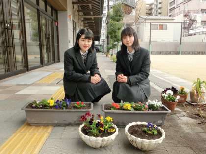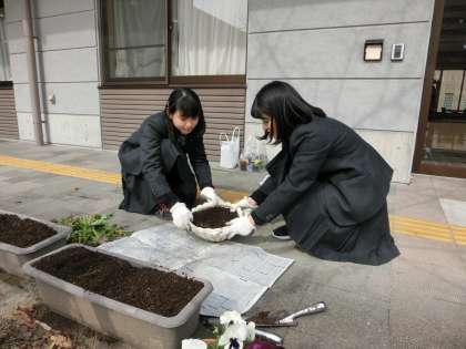 3年生のみなさんが明るい気持ちで卒業式を迎え、新たな旅立ちとなりますよう、2年生二人で心を込めて植えました。ご来校の際は、ぜひご覧ください。