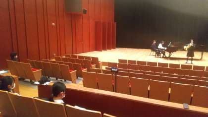 音楽科教員である担任の他に、副担任や、他の音楽科教員も応援に駆け付け、譜めくりや伴奏を引き受ける、贅沢な会となっていました。生徒たちは、受験する大学の試験曲を、広い空間で演奏し、動画を撮って自分でチェックしたり、聴いてくださった先生方にアドバイスをもらったりしていました。どの生徒も緊張や不安はあるでしょうが、自分の積み重ねてきたことへの手ごたえを持っているようで、笑顔でのびやかに演奏する姿が愛おしく思えました。