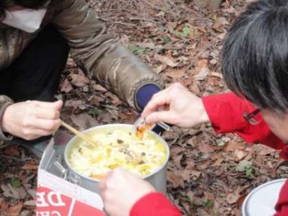 音高ワンゲル恒例の昼食メニュー、今回は「ほうとう風きしめん」。