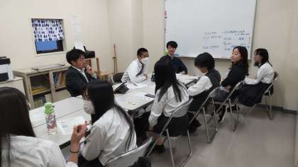 引継ぎのあとは、新役員だけでの会議です。最初の大きな行事である「音高祭(文化祭)」に向けての初打合せ【写真下】。さて、どんな計画を考えてくれるでしょうか。楽しみです。