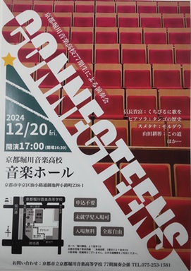 明後日 12月20日(金)17:00から、本校音楽ホールにおいて、2年生(77期)が、「総合的な探究の時間」で取り組んできた成果を発表する演奏会、題して「CONNECTEENS」(コネクティーンズ:‟人とつながる10代”)を開催します。