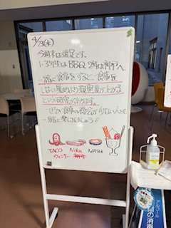 玄関入ったところにある小さなホワイトボードは、いつも何かしら案内やトピックや新聞記事などが張られていたりするのですが、今週は今日の遠足に向けての雰囲気を盛り上げる内容でした。