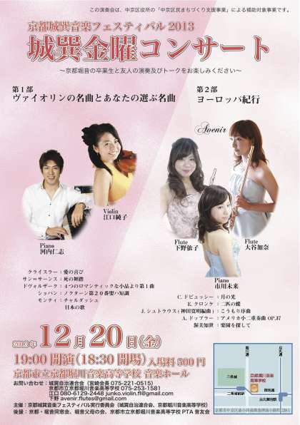 主 催:京都城巽音楽フェスティバル実行委員会(城巽自治連合会、京都堀川音楽高校、施設管理主事室)