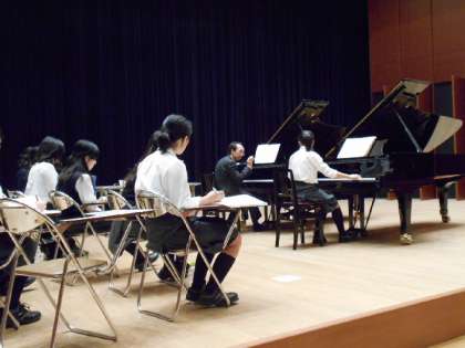 今回はショパンエチュードを題材として、その音楽的な魅力を解説していただきながら、題材となるエチュード各曲のことだけでなく、エチュードを弾いて行く上で必要なこと、このエチュードが多くの作品を弾いて行くための基礎になっていること、ピアノを将来弾いて行く上で必要なことなど、生徒たちがこれから音楽を学んで行く時の道標になるお話を、たくさん教えていただくことができました。