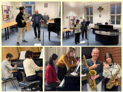 レッスンの時間までは、音楽院の入口にある受付に行ってカードを係の方に渡してカギを借りる「堀音スタイル」で、みんな譲り合ってウォーミングアップや、明日のコンサートで演奏するアンサンブルの合わせをして、忙しい1日を過ごしていました。