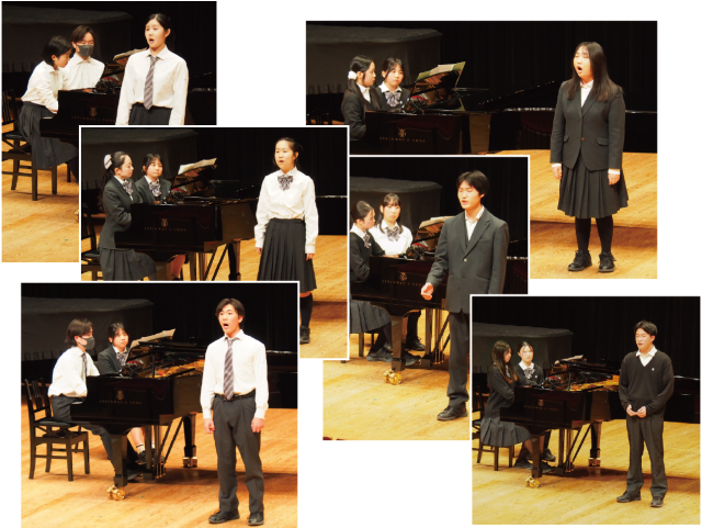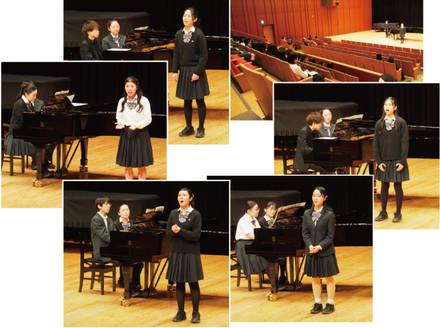 声楽では、チェンバロに引き続き多くの生徒が聴衆として残る中、1年生が古典イタリア歌曲を1曲、2年生はそれに加えてもう1曲(アリアが多く選ばれていました)を演奏しました。声は身体そのものが楽器であり、高校の3年間はその楽器をつくり上げていく過程にあります。生徒たちはその中で、今できる表現を届けようとしていたと思います。ディクション講座で学んでいるイタリア語の発音も、それぞれの表現に生かされているように感じられました。