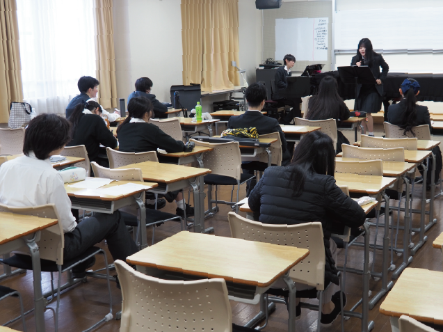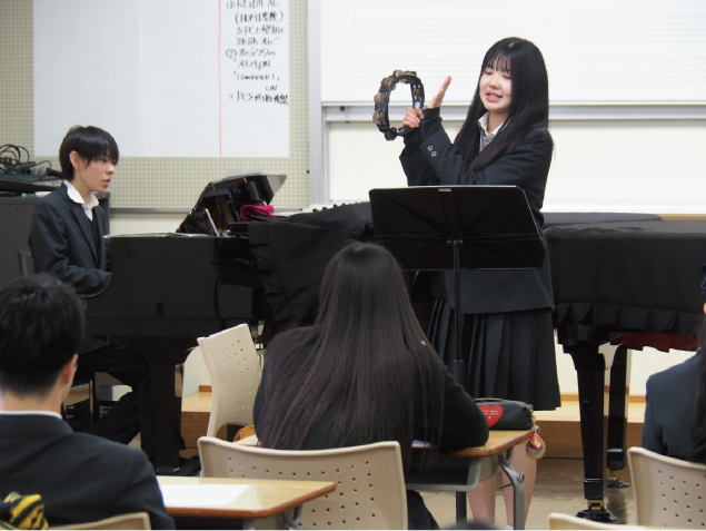 3月23日(月)、1年生が4月に実施する「0歳からの絵本コンサート」に向けた中間発表を行いました。この取組は、半年間にわたり総合的な探究の時間の中で進めてきたもので、1年生にとって大きな挑戦の一つです。ひな祭りコンサートや卒業演奏会と並行しながら取り組んできたプロジェクトでもあります。