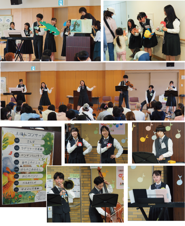 4月11日(土)・12日(日)・18日(土)・19日(日)の4日間にわたり、2年生がこの半年間取り組んできた「0歳からの絵本コンサート」が行われました。