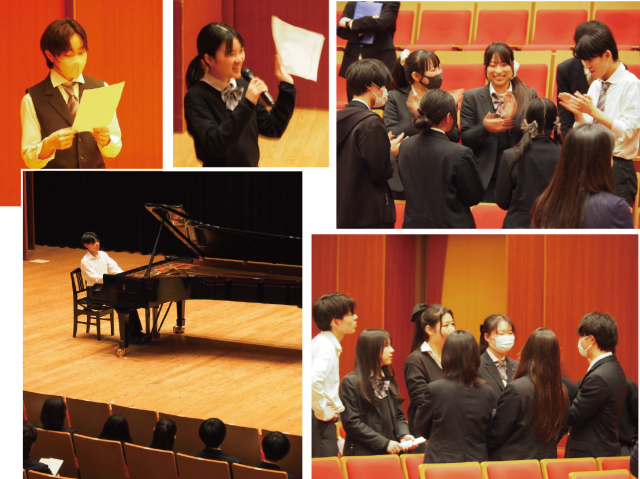 同朋高校からは、作曲専攻の生徒によるピアノ曲を作曲者自身の演奏で披露され、本校からはヴァイオリンとピアノによる独奏が披露されました。