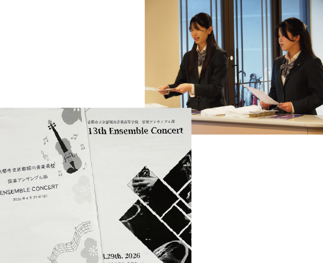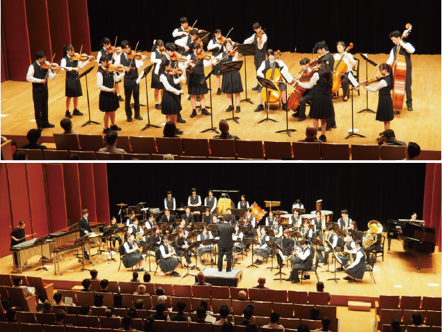 「堀音には部活動があるのか」という印象を持たれている方も多いかと思いますが、本校にもいくつかの部活動があり、その中でも人数が多いのが弦楽アンサンブル部と管楽アンサンブル部です。