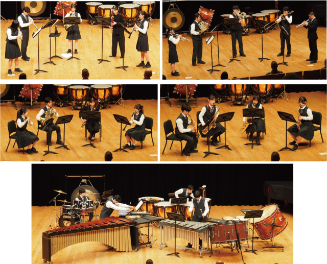 前半は弦楽アンサンブル部による演奏で、室内楽4曲と弦楽合奏1曲が披露されました。後半は管楽アンサンブル部による演奏で、小編成アンサンブル5曲と吹奏楽4曲が演奏されました。