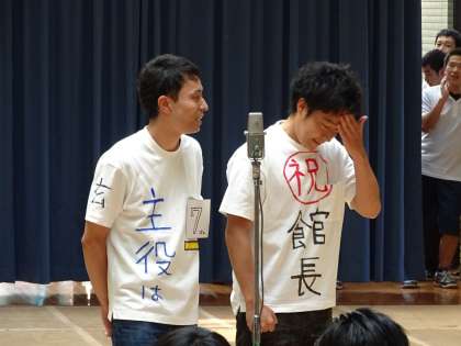 写真中:お笑いコンテスト(教員の「玄ちゃん翔ちゃん」)