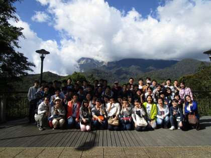 集合写真は、キナバル山を背景にしました。雲で全景が見えませんでしたが、キナバルの雄大な姿は「山」の19期生たちを暖かく迎えるようでした。