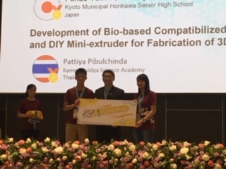 堀川高校はポスター部門では1位を逃してしまいました。しかし、オーラルプレゼンのエンジニアリング部門の発表が始まり、ドキドキする時間が経過します。というのも、Bronze,Silver,Goldは1校ずつとは限りません、1校あるは複数校の時もあります。Bronzeで呼ばれずSilverでも呼ばれずしかも複数校の表彰で時間がかかります。いよいよ最後のGoldの発表です。