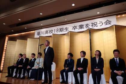 「卒業を祝う会」を開催いたしました。毎年、卒業式の行われた日の夕刻、PTA主催で、先生方と保護者の参加で行われています。