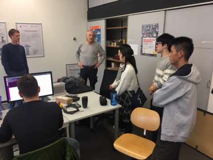 その途中には休憩も兼ねて実際にロボットアームを作成している研究室を訪問し、実際に動いているところを見せていただきました。