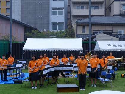 8月24(土)、本校本能館にあるグラウンドで本能自治会夏祭りが開催されました。例年の通り、今年も本校の「吹奏楽部」がオープニングで演奏を披露し、たくさんの地域の皆様に楽しんでいただきました。