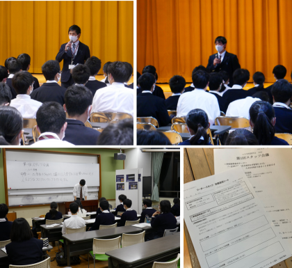 全体会の中では文化祭で1年生が演劇に取り組んだことを踏まえ「学校説明会を一つの演劇と捉えて,堀川高校を伝えていって欲しい」との副校長先生の言葉や,22期生学年主任からの「22期生が初めてクラスを超えて団結するよい機会」という言葉での激励がありました。リーダー代表は自分も中学校1年生の時に見た学校説明会で堀川高校の先輩方に憧れをもった,というエピソードを披露し,学校説明会を共に盛り上げていきましょう,と締めくくりました。