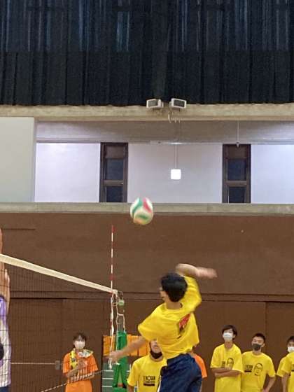 生徒会執行部が企画運営をしてくれ,当日は,朝早くから,各クラスの体育部員,バレーボール部が準備をしてくれました。審判や線審,得点係も活躍してくれ,無事に終えることができました。感染予防対策や熱中症予防対策にも,生徒ひとりひとりが意識を持って行動しました。