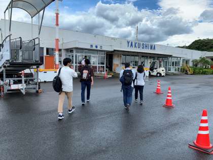 着陸できるかわからない中、「思ってたより3倍小さい」(生徒談)飛行機に乗りこみ、無事屋久島空港に到着しました。