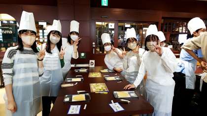 白い恋人パークでは、名物「白い恋人」の製造過程を見学したり、各自でオリジナルクッキーづくりを体験したりしました。