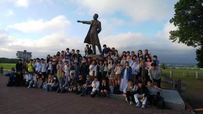 その後は羊ヶ丘展望台へ。クラーク博士が北海道の学生を鼓舞した地は眺望が開けており、解放感に浸った23期生たち。仲間と肩を並べて食べたジンギスカンは美味しかったです!