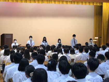 これから,宿泊研修報告書や,学校説明会での宿泊研修紹介ブースについても,宿泊研修委員を中心に取り組みを続けます。また,ひとりひとりが,「未知の世界を知ることで自分をみつめなおし,それを未来にいかす探究者になる」という宿泊研修の目標に日常を照らして,これからの学校生活を充実させていってほしいと思います。