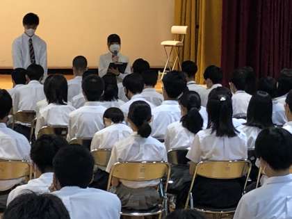 27日月曜日1時間目,24日金曜日に帰着した23期生宿泊研修の解団式が行われました。