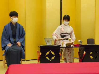 お点前をした男子部員は、前日までYouTubeでしっかりイメージトレーニングもして当日に臨み、堂々としたお点前を披露し、裏千家から部活動指導に来ていただいている先生からも「もう安心ですね」と太鼓判を押していただきました。