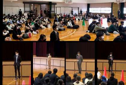 3月24日(金)、ここ数年、新型コロナウィルスの影響で実施できていなかった離任式を本校アリーナにて行いました。