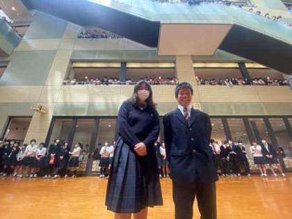 また、代表の2年生の生徒からは、英語での挨拶があり,こちらもアトリウムに大きな拍手が沸き起こり,短時間ではありましたが、非常に盛り上がった歓迎のセレモニーとなりました。