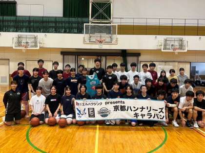 5月21日、京都のプロバスケットボールチーム、京都ハンナリーズの56番小室昂大選手、アシスタントコーチの井堀真緒氏、マネージャーの渡邊好美氏に堀川高校バスケットボール部にお越しいただき、バスケットボールクリニックを開催していただきました。