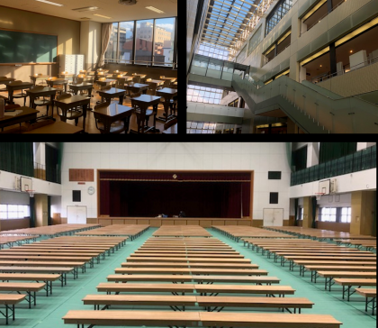 個別相談を担当する生徒たちは、教室整備を行うとともに、生徒同士で練習を行い、中学生との「対話」で大切なことを確かめました。学校生活・探究基礎・宿泊研修を紹介するブースの生徒たちは、当日のポスターセッションで用いるポスターを設置したり、教室を装飾したりしました。レイアウトや写真ひとつひとつにも工夫を凝らしていました。