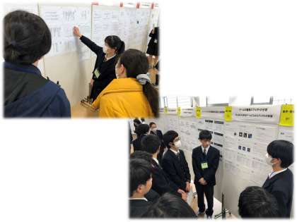 「AcaPro(Academic Project)」は、「探究に耽る(ふける)」をテーマに生徒自身が「個人探究」「グループ探究」「後輩指導」の3つのコースを選び、2年生後期に取り組んできました。この活動の成果を、ポスター形式で発表しました。