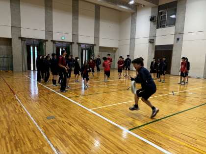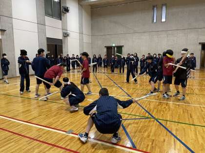 4月10日の課題テスト終了後、24期生の文系クラスでレクリエーションが実施されました。内容は、「朝までそれ正解」(クイズ大会)、気配切り、ドッジボール・ドッジビーでした。ドッジボール、ドッジビーともに非常に白熱した試合が繰り広げられました。特にフリスビーを用いた「ドッジビー」では、生徒が「投げるのが難しかった」と言っていたように、慣れたボールとは違い、普段ほとんど使わないフリスビーに苦戦しつつも、生徒たちは楽しんでいました。
