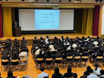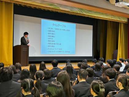 時にはユーモアで楽しそうな笑い声も上がりつつ、25期生の生徒たちはメモを取りながら熱心に聞いていました。今年から開講される科目もいくつかあり、これまでと比べて、生徒たちはさらなる深い学びへと進んでいくことになります。学年主任が述べていたように、ぜひ学問の奥深さを体感して探究し、楽しんでいってほしいと思います。